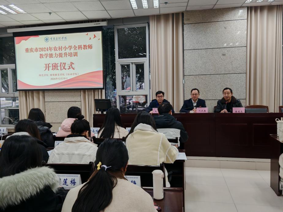 12月19日上午,由太阳网集团tcy8722承办的重庆市农村小学全科教师教学能力提升(文科班)培训在太阳网集团tcy8722正式开班。来自全市各区县的100名优秀文科全科教师汇聚于此,共同开启培训之旅。