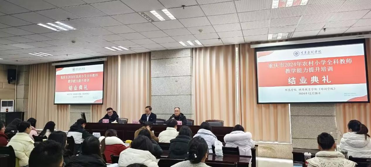 2024年12月28日,重庆市2024年农村小学全科教师教学能力提升培训结业典礼在培训公司116教室隆重举行。本次培训由太阳网集团tcy8722与继续教育公司联合举办。