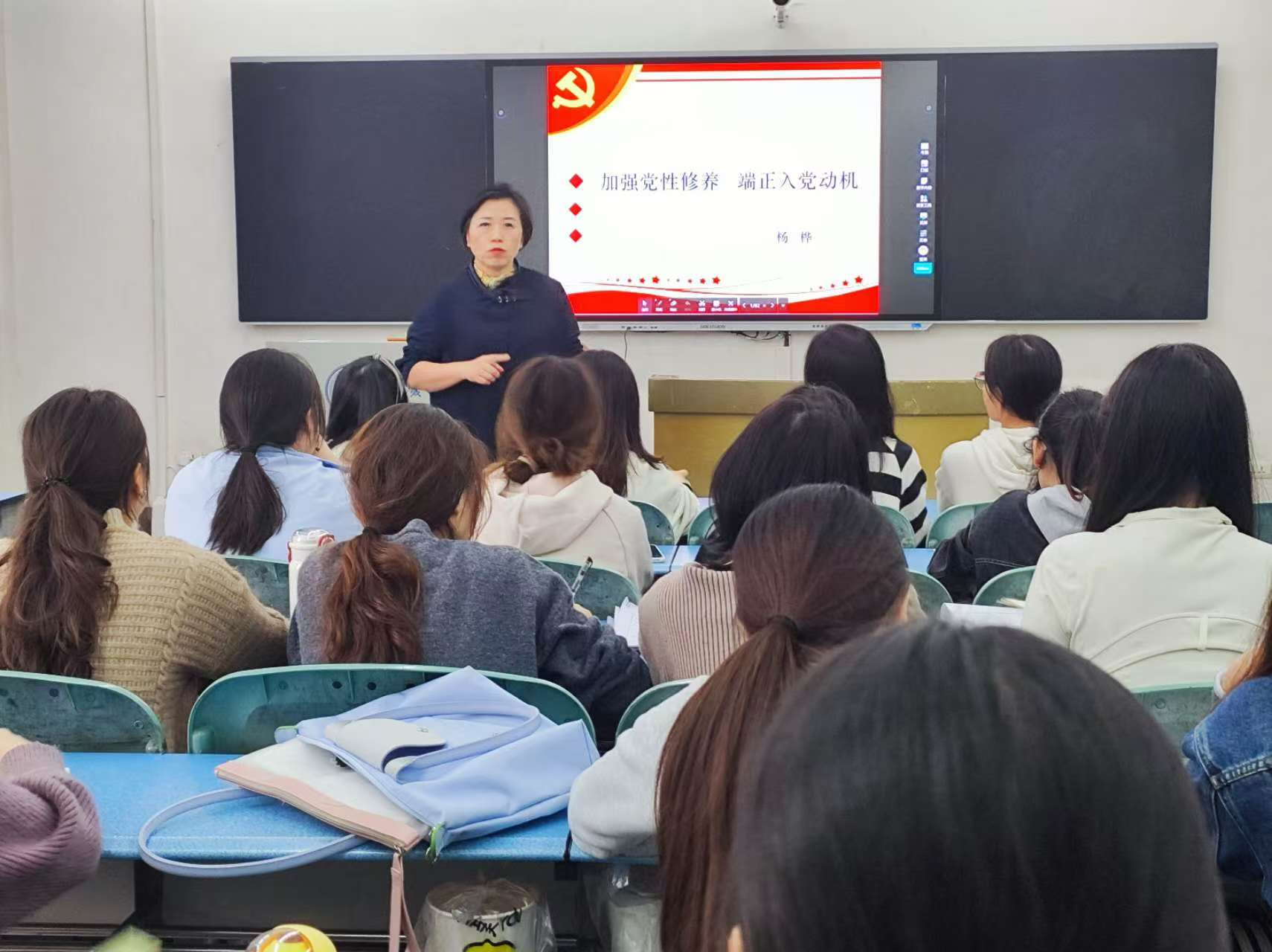杨桦以“加强党性修养,端正入党动机”为题开展专题党课。在党课中深入浅出的讲解了夏明翰、陈然、江竹筠等革命先辈和身边优秀共产党员的先进事迹,让发展对象深刻感悟革命先辈坚守初心使命,保持党员本色的信念。希望全体发展对象延续革命先辈荣光,厚植家国情怀、涵养进取品格,坚定理想信念,不负时代,不负华年。