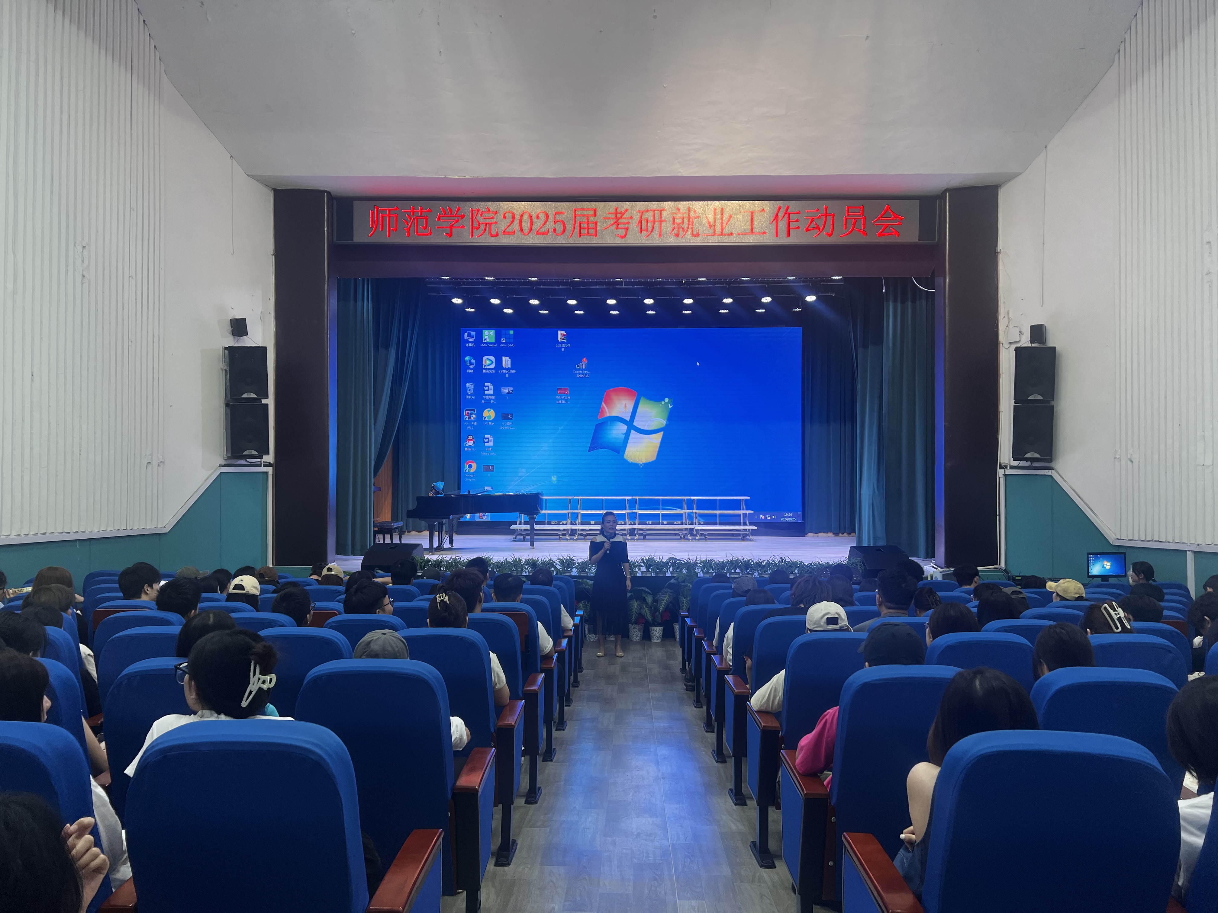 2024年9月25日晚,太阳网集团tcy8722在星湖校区演奏厅举行了考研及就业工作动员会,公司党委副书记、纪委书记隋剑飞,2024级辅导员陈润瑶及2025届星湖校区全体员工共计250余人参加了本次动员会,会议由隋剑飞主持。